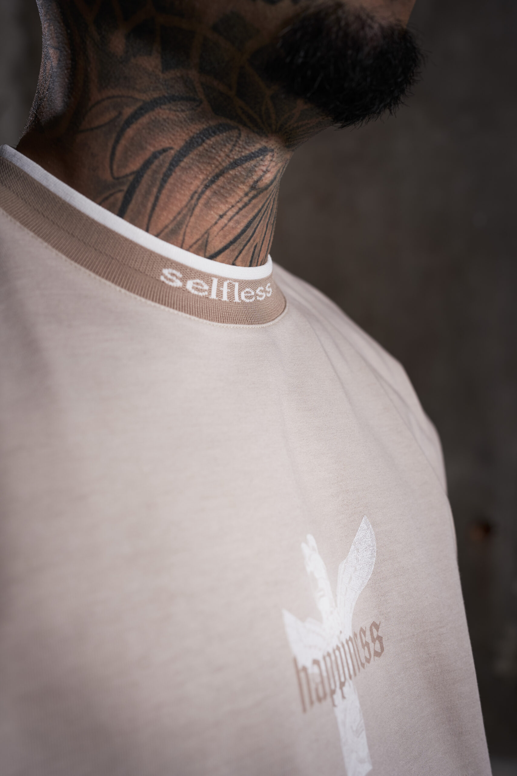 • Jacquard Kragen mit „selfless“ Schriftzug